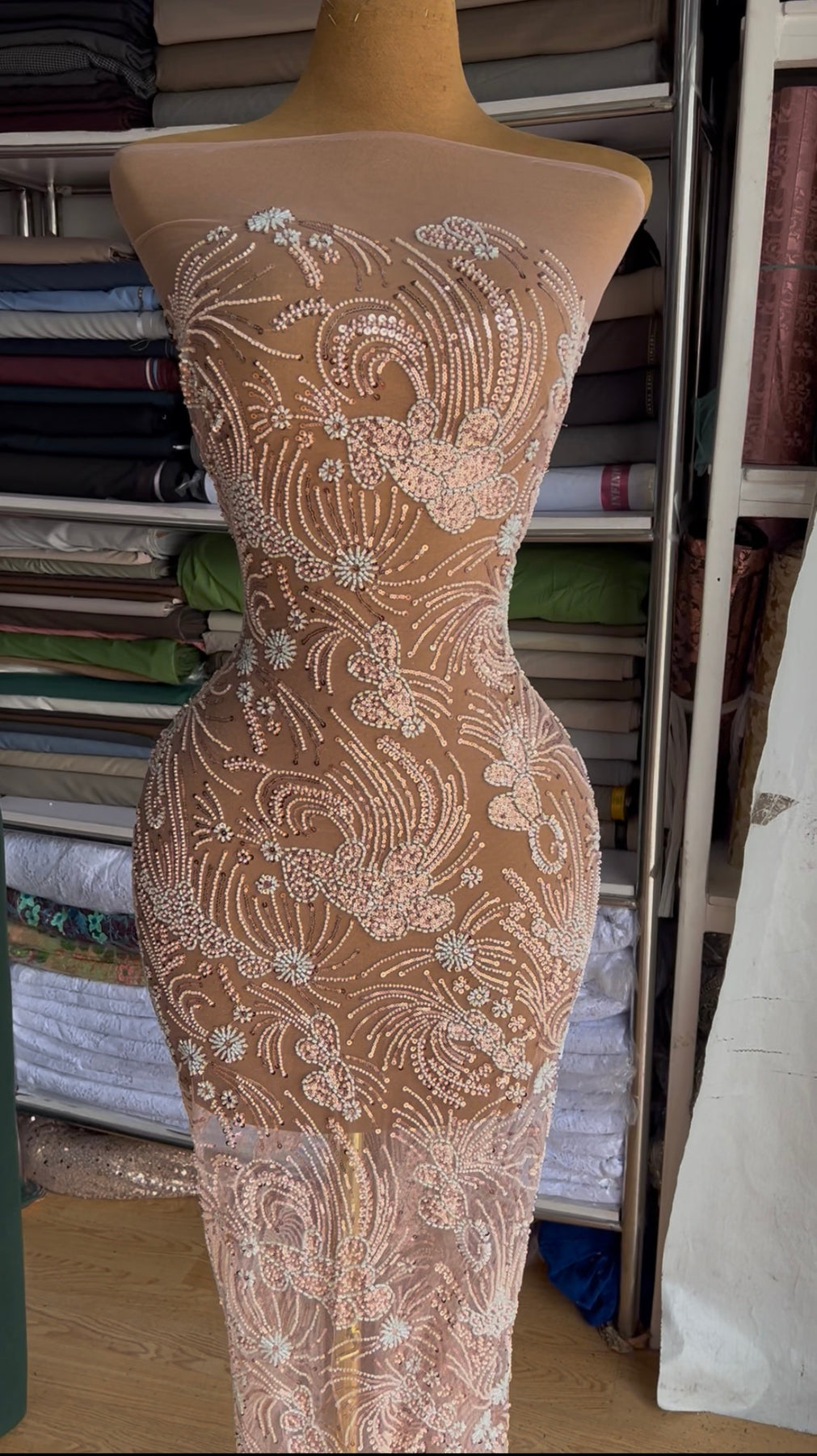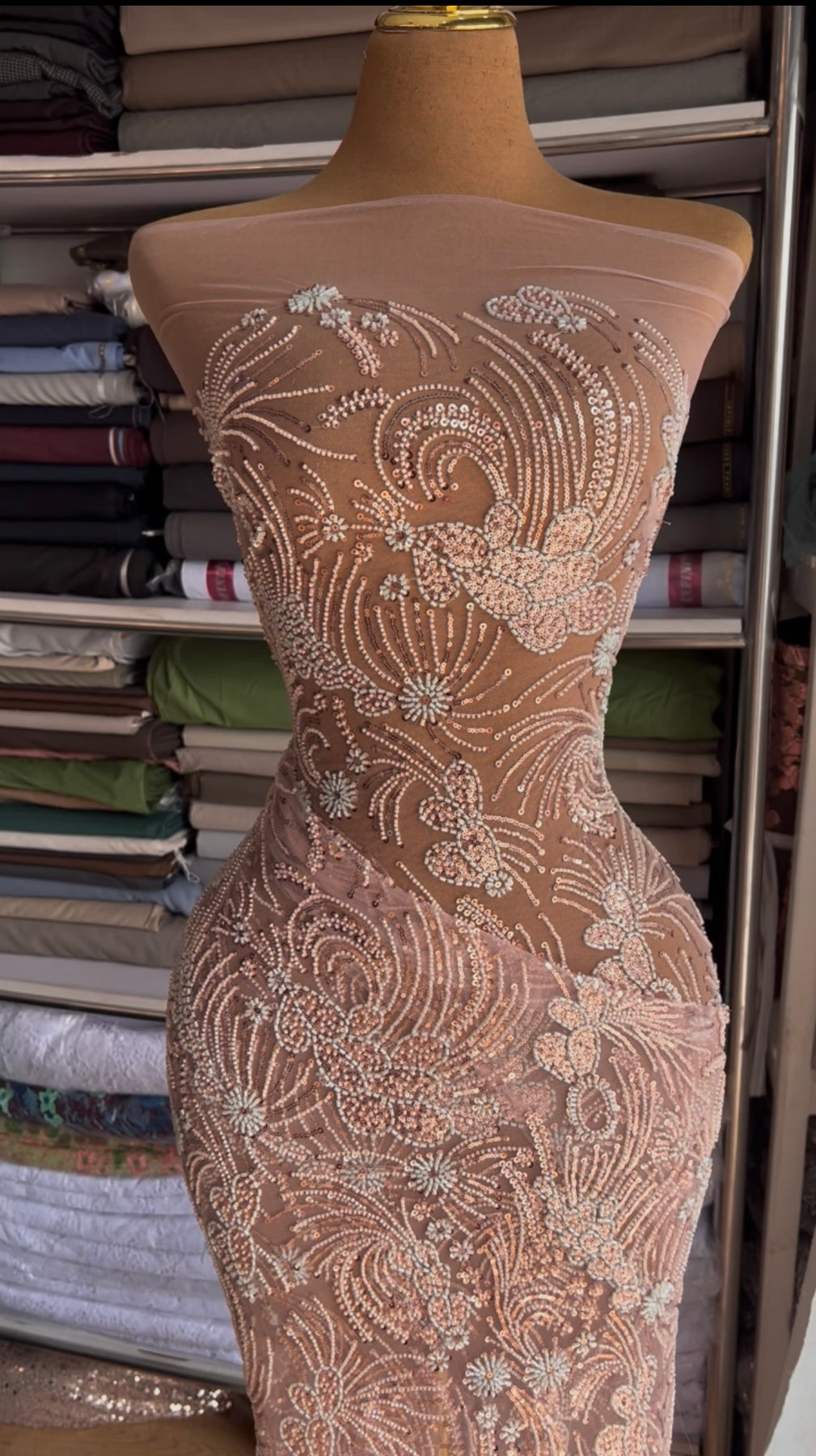 Rose gold. Beautifully beaded luxury lace.