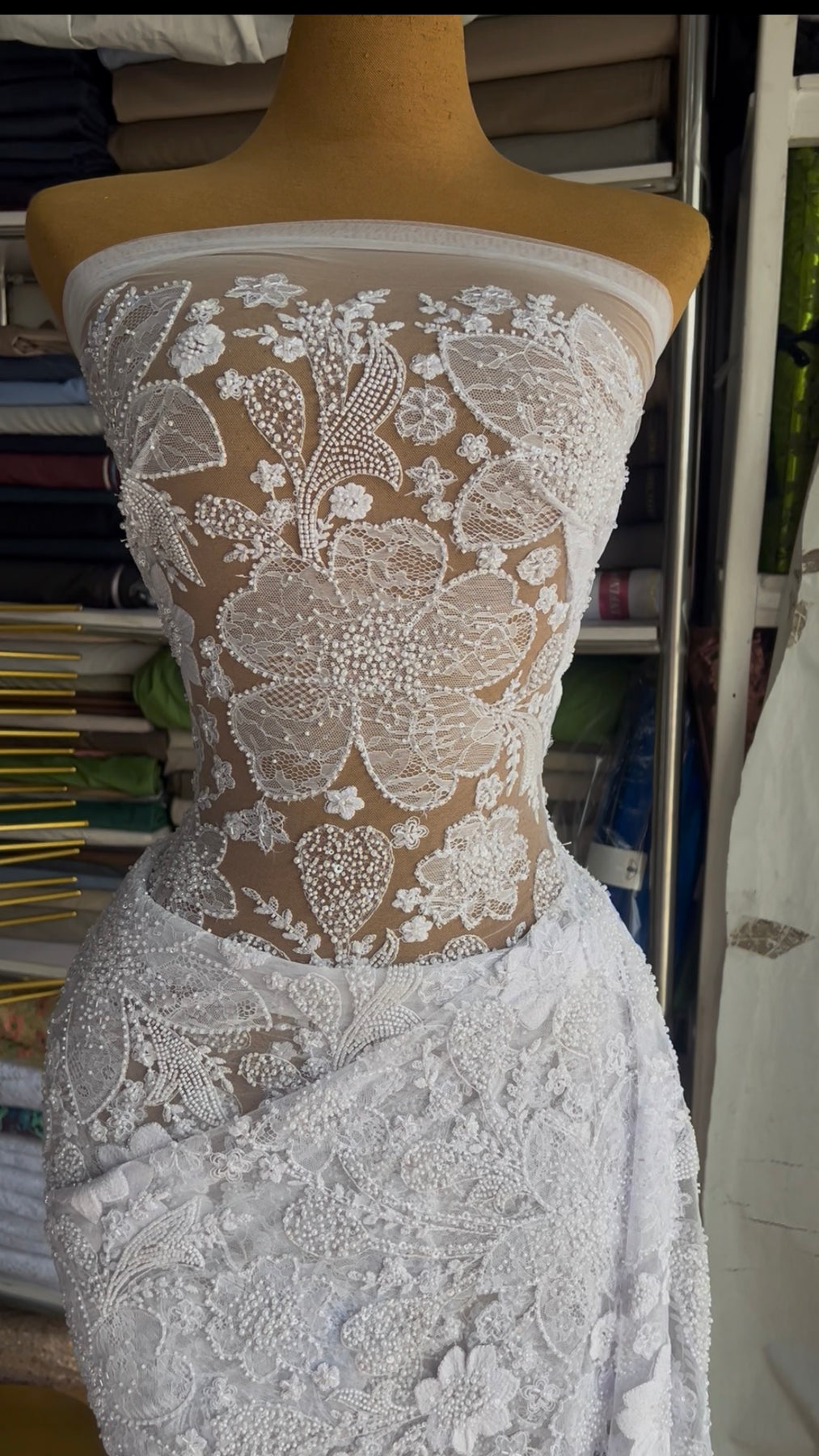 Chantilly that dreams are made of. It’s soft and delicate. You can’t miss with this fabric.