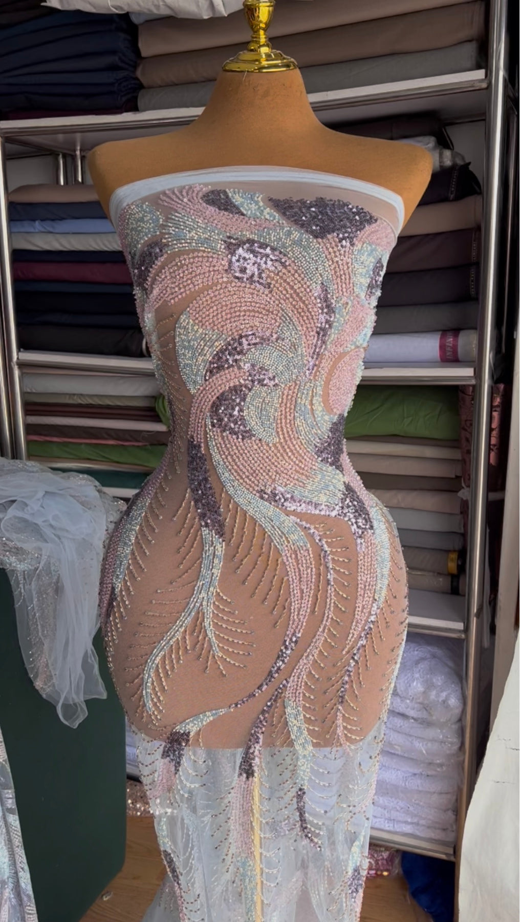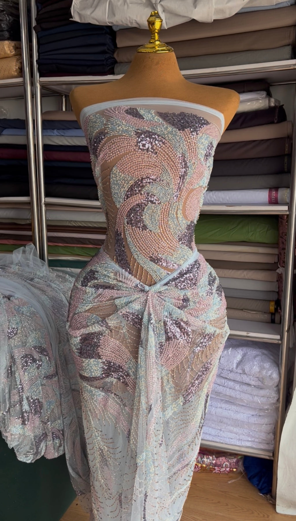 Sky blue, pink and gold. Top of the range fabric